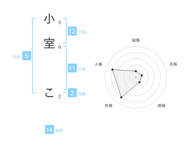 小室 こさんの外格は5画の4点!
