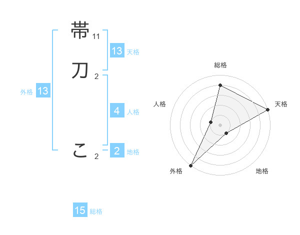 帯刀 こさんの天格は13画の5点!