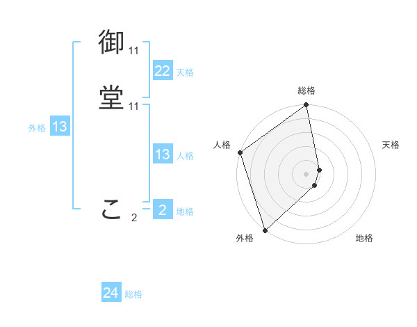 御堂 こさんの外格は13画の5点!