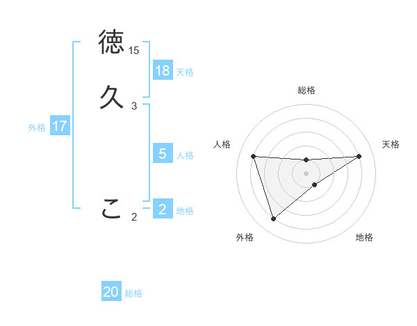 徳久 こさんの総格は20画の1点!