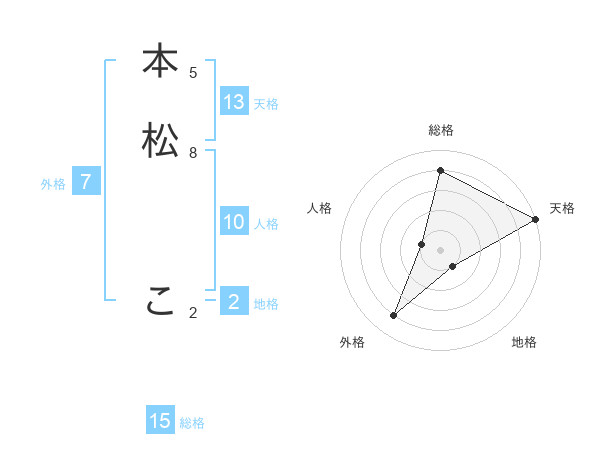 本松 こさんの天格は13画の5点!