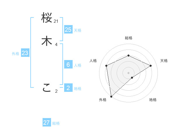 桜木 こさんの天格は25画の4点!