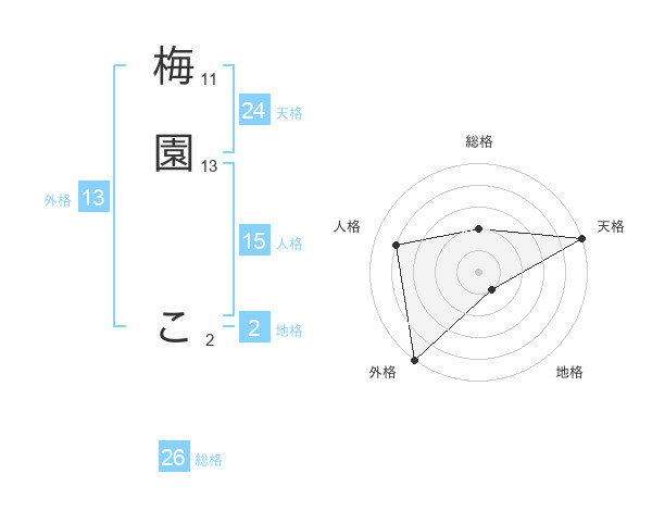 梅園 こさんの総格は26画の2点!