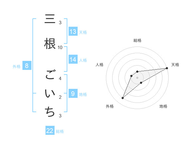三根 ごいちさんを姓名の画数から五運を鑑定