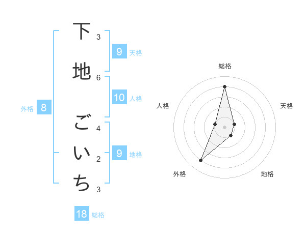 下地 ごいちさんの総格は18画の4点!