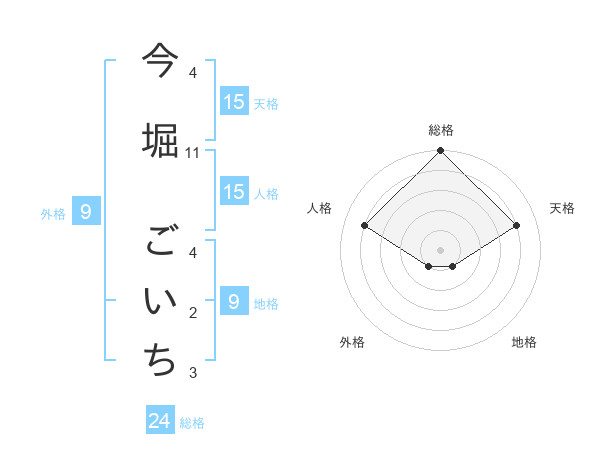 今堀 ごいちさんを姓名の画数から五運を鑑定