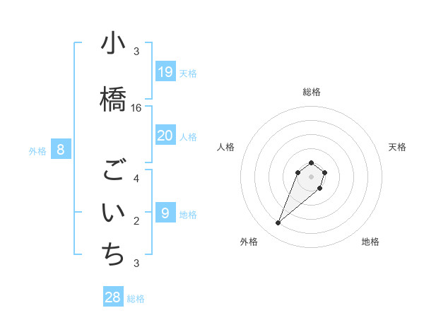 小橋 ごいちさんの総格は28画の1点!