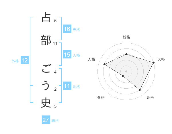占部 ごう史さんの総格は27画の3点!