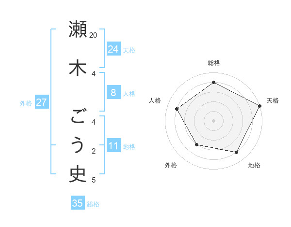 瀬木 ごう史さんを姓名の画数から五運を鑑定