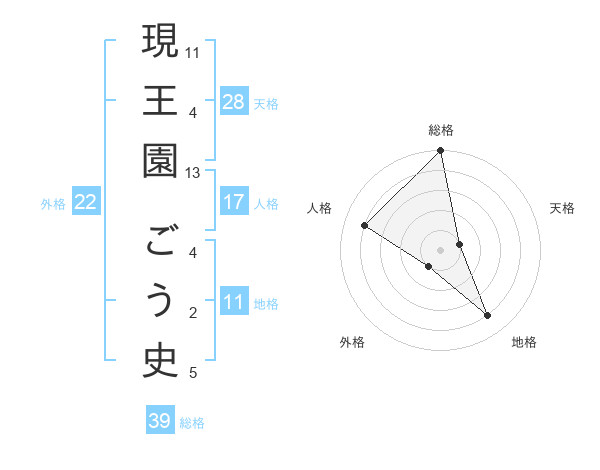現王園 ごう史さんを姓名の画数から五運を鑑定