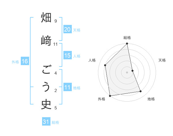 畑﨑 ごう史さんを姓名の画数から五運を鑑定