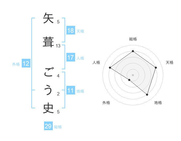 矢葺 ごう史さんの総格は29画の4点!