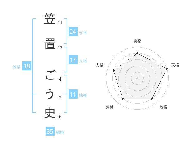 笠置 ごう史さんを姓名の画数から五運を鑑定
