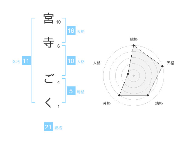 宮寺 ごくさんの総格は21画の5点!