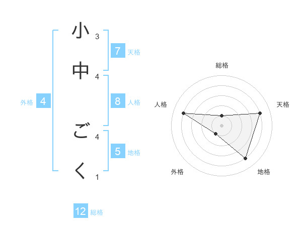 小中 ごくさんの総格は12画の1点!