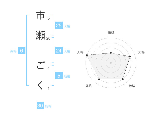 市瀬 ごくさんを姓名の画数から五運を鑑定