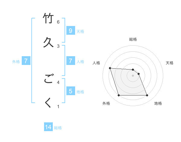 竹久 ごくさんを姓名の画数から五運を鑑定