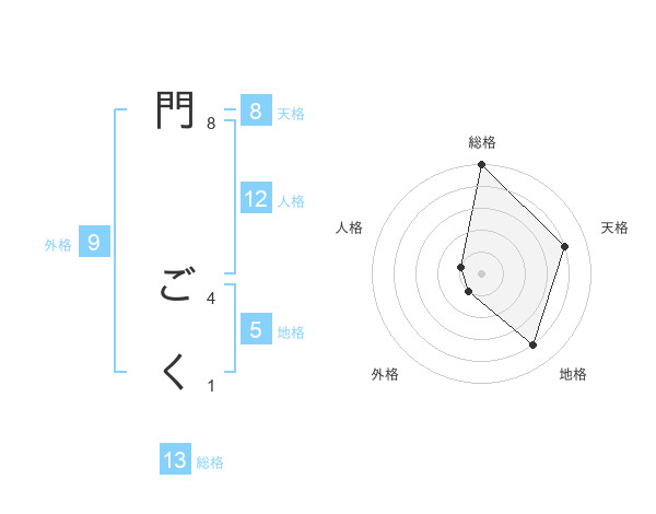 門 ごくさんの総格は13画の5点!