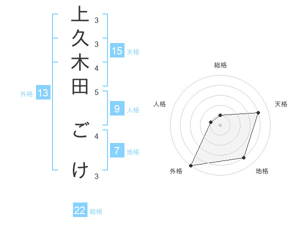 上久木田 ごけさんを姓名の画数から五運を鑑定