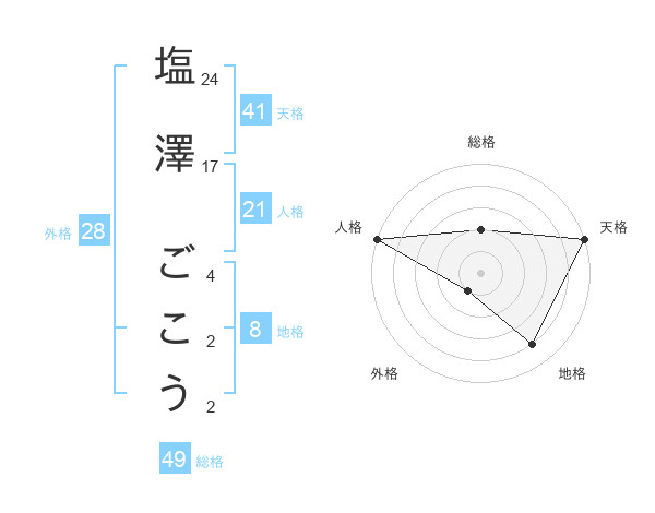 塩澤 ごこうさんを姓名の画数から五運を鑑定