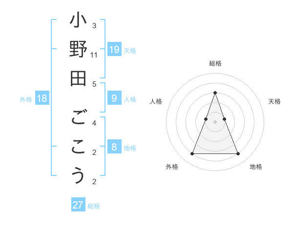 小野田 ごこうさんを姓名の画数から五運を鑑定