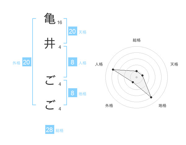 亀井 ごごさんの総格は28画の1点!