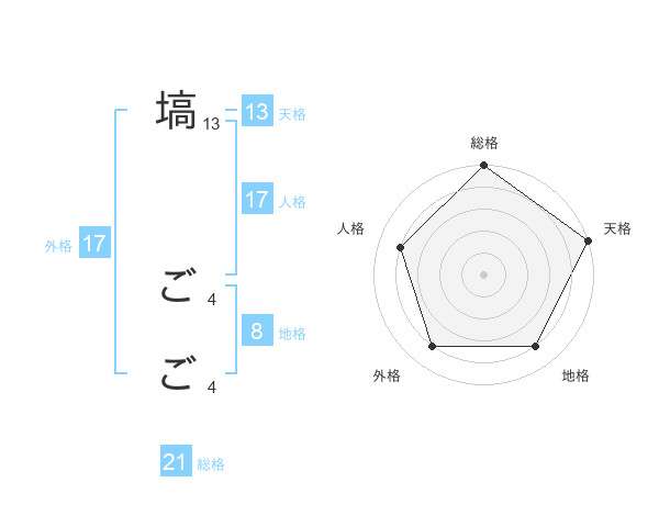 塙 ごごさんの外格は17画の4点!