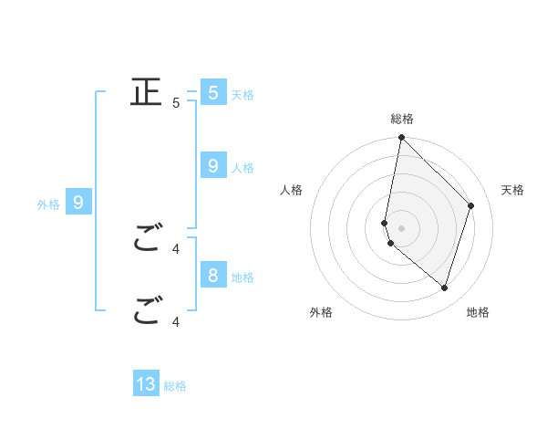 正 ごごさんの総格は13画の5点!