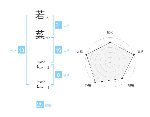 若菜 ごごさんを姓名の画数から五運を鑑定