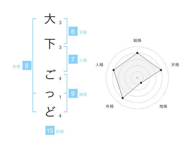 大下 ごっどさんの総格は15画の4点!