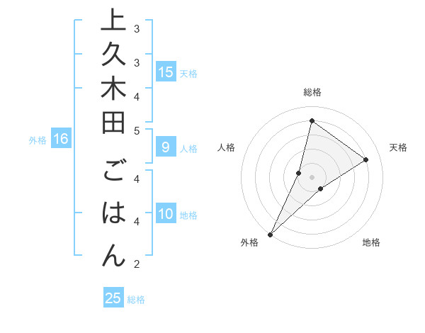 上久木田 ごはんさんを姓名の画数から五運を鑑定