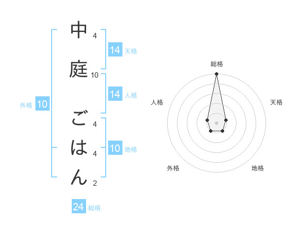中庭 ごはんさんを姓名の画数から五運を鑑定