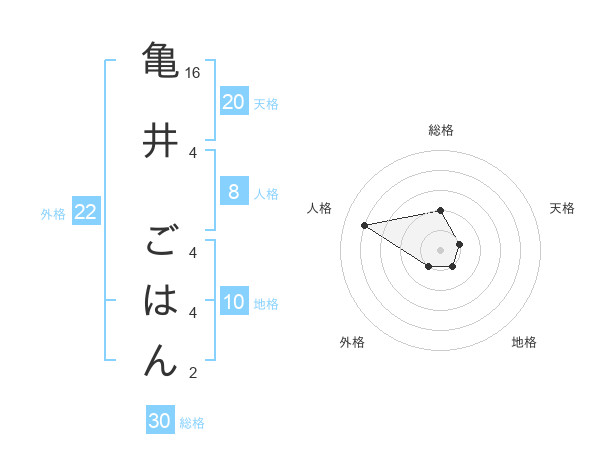 亀井 ごはんさんの総格は30画の2点!