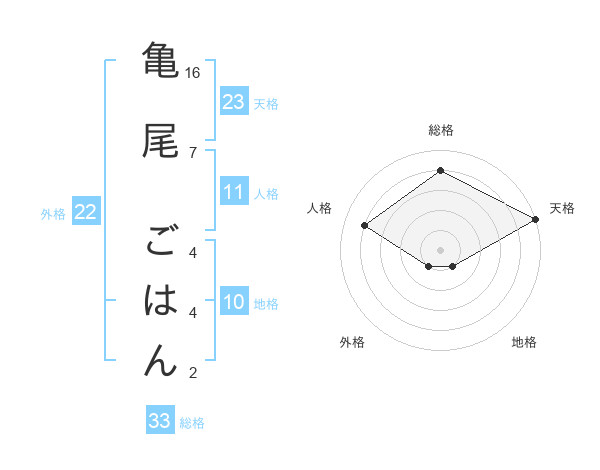 亀尾 ごはんさんを姓名の画数から五運を鑑定