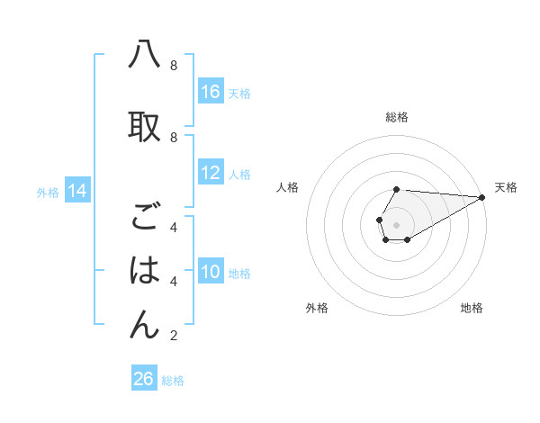 八取 ごはんさんの天格は16画の5点!