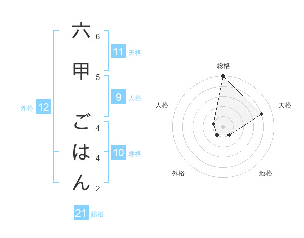 六甲 ごはんさんを姓名の画数から五運を鑑定