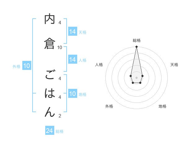 内倉 ごはんさんを姓名の画数から五運を鑑定