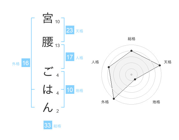 宮腰 ごはんさんを姓名の画数から五運を鑑定