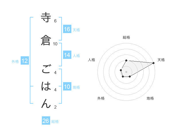寺倉 ごはんさんを姓名の画数から五運を鑑定