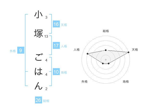 小塚 ごはんさんを姓名の画数から五運を鑑定