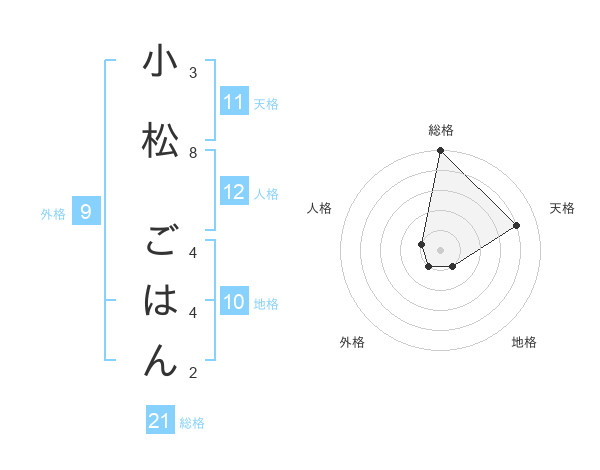 小松 ごはんさんを姓名の画数から五運を鑑定