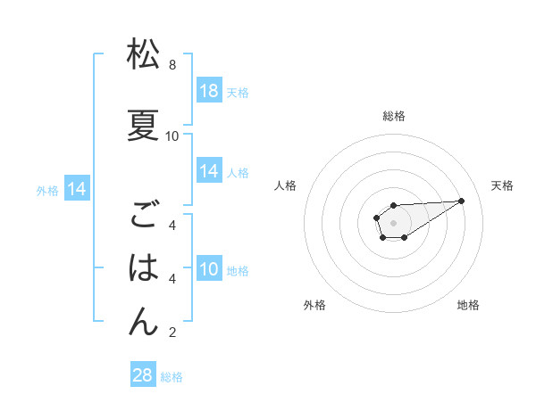 松夏 ごはんさんの天格は18画の4点!