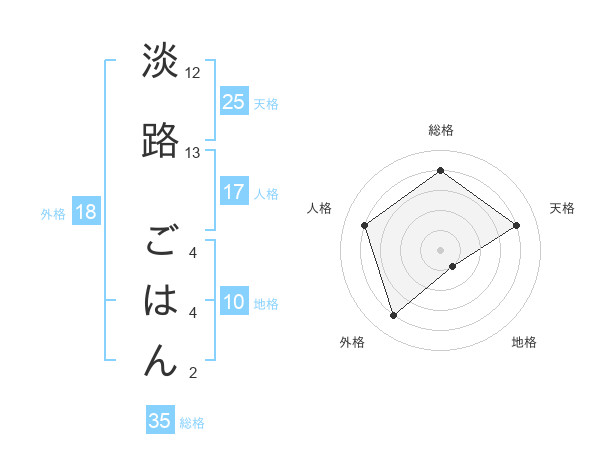 淡路 ごはんさんの総格は35画の4点!
