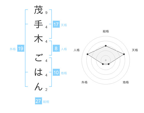 茂手木 ごはんさんを姓名の画数から五運を鑑定