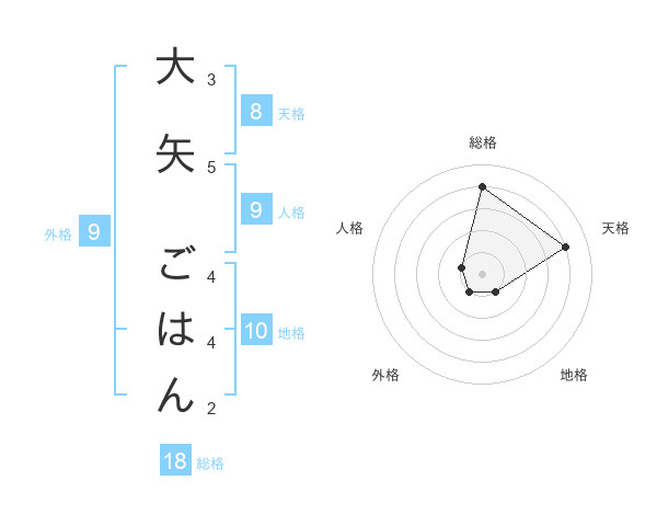 大矢 ごはんさんの天格は8画の4点!