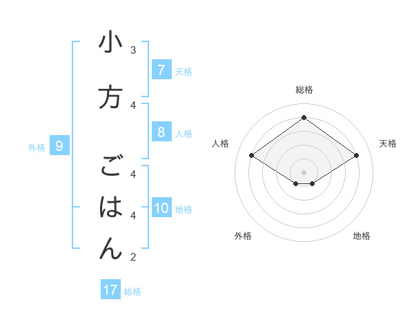 小方 ごはんさんを姓名の画数から五運を鑑定