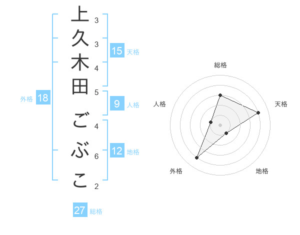 上久木田 ごぶこさんの総格は27画の3点!