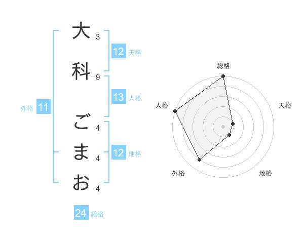 大科 ごまおさんを姓名の画数から五運を鑑定