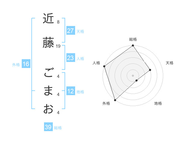 近藤 ごまおさんを姓名の画数から五運を鑑定