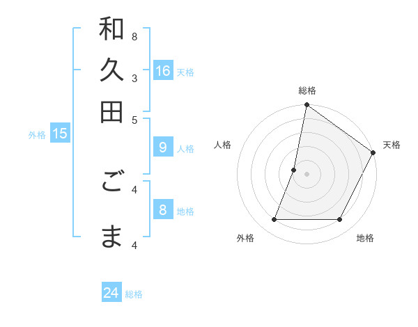 和久田 ごまさんを姓名の画数から五運を鑑定